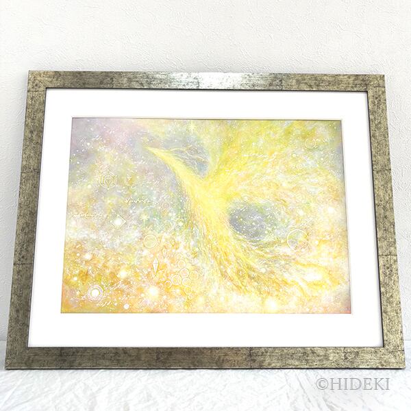 鳳凰のアクリル画~金の羽ばたき~豊かさをもたらす愛の象徴