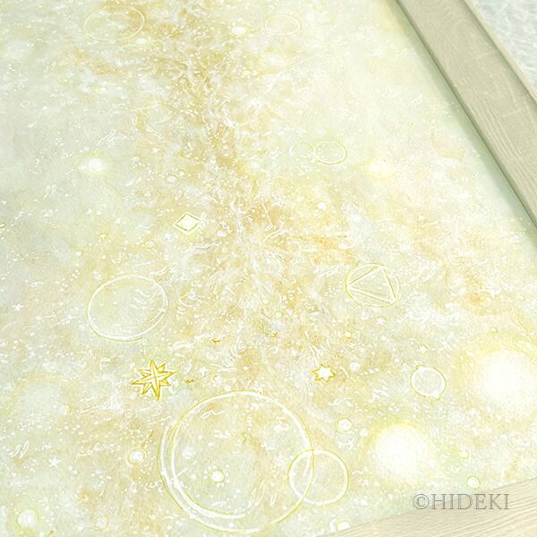 柔らかな乳白色と淡いゴールドを基調としたこのアクリル画は、