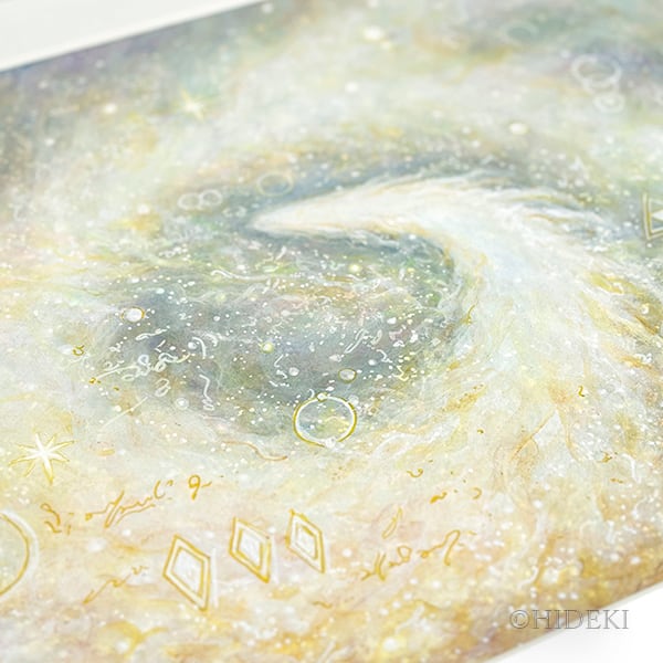 透明感のあるブルーやグリーンが織りなす幻想的な宇宙空間。