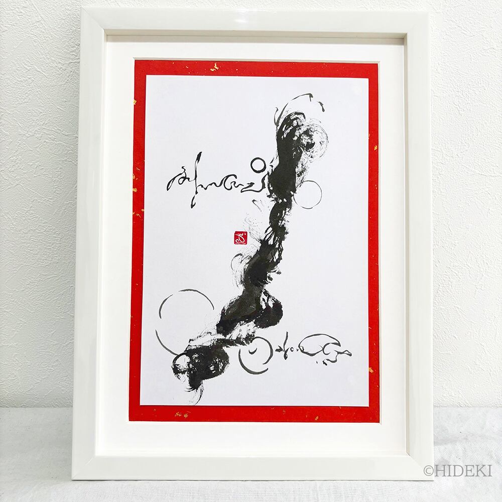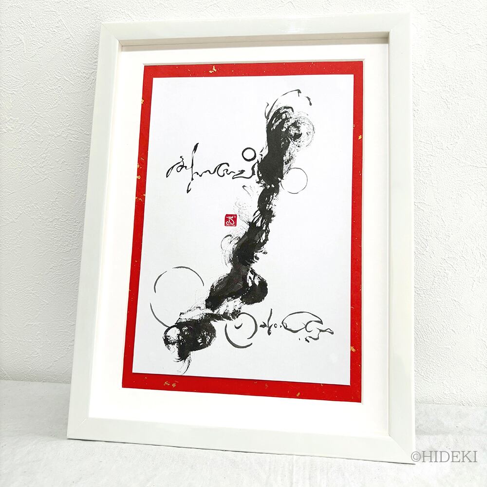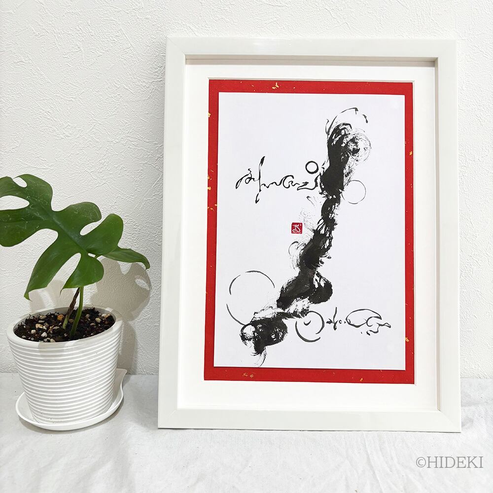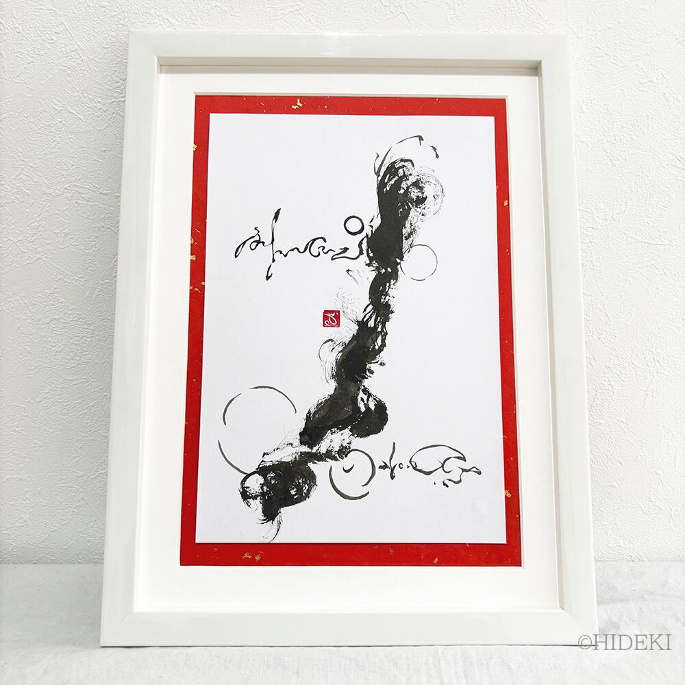 龍神様のメッセージ「心変われば、運命が変わる」墨絵抽象画原画作品|タマシイの伝言シリーズ