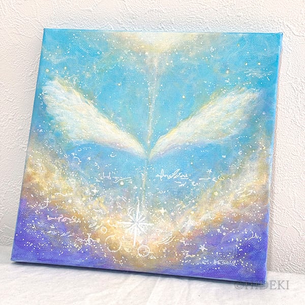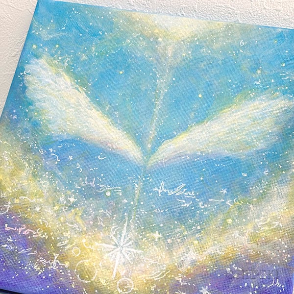 心を癒すアクリル画、天使の絵「輝いて!」です。